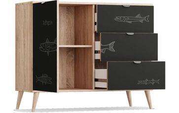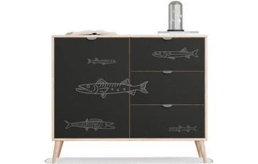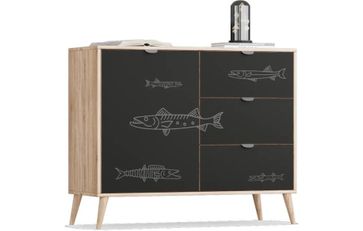 Желаете освежить интерьер новыми деталями в стиле Современный, Модерн, Скандинавский, Кантри? «Комод Бержер 4 Fish» Это именно то, что вы искали. Великолепный дизайн не оставит вас равнодушным. Название цвета по фото и комплектация (размер): корпус ЛДСП дуб сонома, фасад ЛДСП принт Fish, ножки массив бука None Есть доставка.
