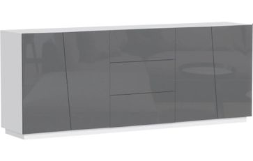 Прекрасный выбор для интерьера в стиле Минимализм, Лофт, Современный - «Комод Цесена 220 графит». Данная модель выполнена из надежных материалов и надолго сохранит радость от покупки. Надежность и долговечность данной модели легко объяснима материалом корпуса лдсп а фасада глянцевый мдф. Название цвета по фото и комплектация (размер): корпус ЛДСП белый, фасад МДФ Графит Глянец Т702306, Ящики на шариковых направляющих. None Есть доставка.