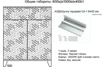 Прекрасный выбор для интерьера в стиле Современный, Модерн, Скандинавский, Арт деко - «Комод Сканди 23 черный глянец». Данная модель выполнена из надежных материалов и надолго сохранит радость от покупки. Название цвета по фото и комплектация (размер): корпус лдсп 3025 PR Дуб сонома светлый, фасад мдф черный глянец. Ножки: массив, цвет ножек выбирать из конструктора. Рисунок 7 None Есть доставка.