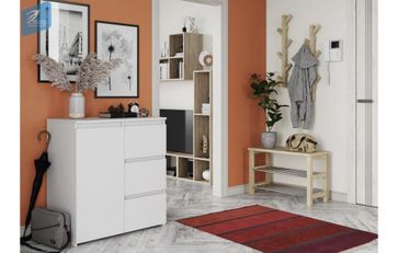 Комод Милано-2 сочетает в себе - классический стиль, экологичные материалы, надежную и удобную в использовании фурнитуру, вместительные и удобные ящики и ниши. Комод состоит из 3х выдвижных ящиков на шариковых направляющих, полезным габаритом Д.323хВ.138хГ.368мм. с правой стороны, и распашной створкой с левой стороны, за которой находится отделение с полкой. Предусмотренный между фасадами ящика зазор в 30мм.,а также утопленные в глубь корпуса декоративные планки, позволяют удобно браться за фасад при его открывании. None Страна производства: Россия Есть доставка.