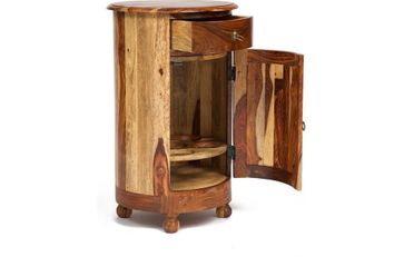 Тумба-бар из коллекции BOMBAY, выполненная из массива палисандра, - удобное решение для любого помещения. Элегантный дизайн, компактные размеры и деревянные колесики позволяют расположить ее в центре комнаты, поставить к стене или в угол. Винтажные круглые формы и фурнитура из патинированной латуни помогут привлечь внимание и сделать яркий акцент на определенной зоне в интерьере. Конструкция закрытого типа удачно сочетает в себе отделение для хранения шести бутылок и небольшой выдвижной ящик для мелочей. Натуральная древесина палисандра, обработанная прозрачным лаком, зачаровывает благородством рисунка, изысканностью материала и красотой. Модель долговечна, прочна, надежна и не требует специального ухода. Тумба-бар отлично гармонирует с мебелью из коллекции BOMBAY, поставляется в собранном виде. Страна-производитель: Индия None Страна производства: ИНДИЯ Есть доставка.