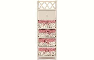 Изысканная тумба Secret De Maison CAGE 5, выполненная в стиле прованс, – это не только красивый, но и функциональный предмет интерьера. Тумба станет украшением вашего дома, добавит уюта и комфорта в ваш интерьер. Она не занимает много места, выдвижной ящик, пять плетеных корзин из ивы и открытая полка станут отличной системой для хранения различных предметов. Декоративные боковые бортики сверху надежно защитят предметы от падения. Плетеные корзины ручной работы и съемные чехлы с нежным принтом добавляют естественности, мягкости и красоты изделию. Эту стильную, привлекающую внимание тумбу, можно поставить в любой комнате: гостиной, спальне, коридоре, ванной. Модель выполнена из массива павловнии, легкого и одновременно прочного материала, с хорошими водоотталкивающими свойствами, благодаря чему тумба долговечна, надежна и не требует специального ухода. Изделие отлично сочетается с мебелью из коллекции SAINT-TROPEZ, поставляется в собранном виде. Страна-производитель: Китай None Страна производства: КИТАЙ Есть доставка.