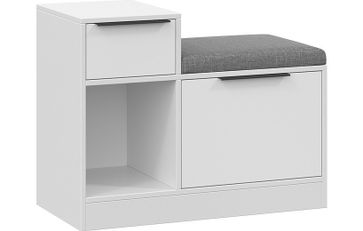 Агата Тумба для обуви комбинированная — тумба для прихожей с функциональным наполнением. Тумба оборудована отделением для обуви с полкой за откидной дверцей и мягким сиденьем с обивкой из рогожки, выдвижным ящиком на шариковых направляющих, нишей.Материал корпуса и фасада ЛДСП. None Страна производства: Россия Есть доставка.