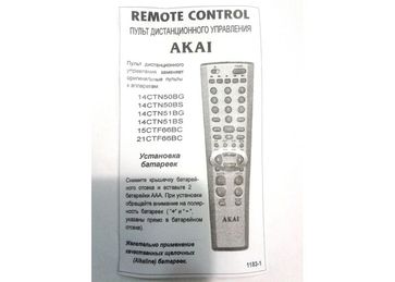 - Пульт д.у. замена пульта AKAI заменяет пульты к следующей технике 14CTN50BS 14CTN50BG 14CTN51BG 14CTN51BS 15CTF66BS 21CTF66BS по выгодной цене 550 р. руб.;