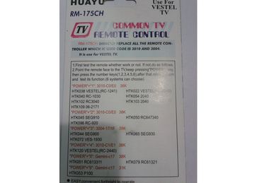 Пульт Vestel RM-175CH (универсальный) заменяет следующие пульты Vestel: