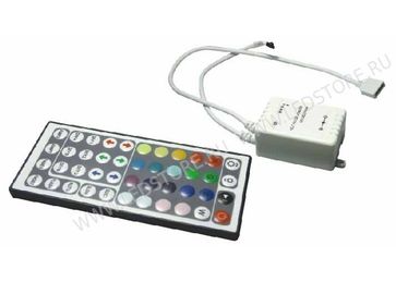 RGB-контроллер IR-ДУ 44 кнопки 24V, 144W, 3 канала по 2А. Размер контроллера 63х35х22мм, размер пульта 125х56х7мм. None