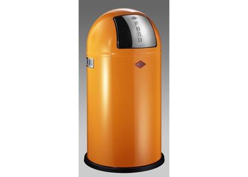 Мусорный контейнер WESCO PUSHBOY 50 литров - оранжевый. Основа и верх лакированная сталь, нержавеющую сталь- крышка, внутреннее мусорное ведро гальванизированная сталь. Гарантия на изделие 5 лет.