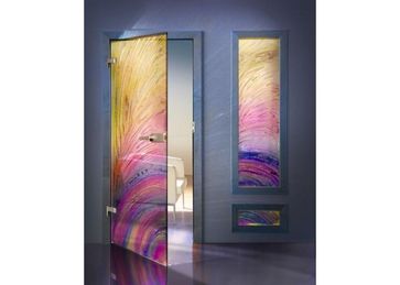 Прозрачное и матовое, цветное или покрытое тонированной пленкой стекло – все это доступно при изготовлении дверей. При использовании технологии пескоструйной обработки стекла, мы можем предложить стеклянные двери с эксклюзивной матировкой (художественный рисунок) по Вашим эскизам.