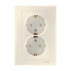Розетка 2-м с заземл. и защ. шторками в сборе SE Sedna SDN3000747, бежевая
