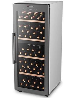 Винный шкаф Climadiff CLS 110 MT оснащается металлическими полками с деревянными лицевыми панелями. Внешние стенки цвета нержавеющей стали, внутренние - черные. В этот винный шкаф поместится 110 бутылок типа "Бордо". Необходима предоплата 50%. Есть доставка.