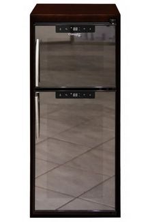 В двухзонном винном шкафу Climadiff Dopiovino в деревянной обшивке можно разместить 21 бутылку (типа Бордо). В силу того, что система охлаждения работает на основе принципа Пельтье, вибрация исключается. В двух разделенных зонах удобно держать напитки разных видов. Строгий дизайн и наличие двух удобных дверей позволяют размещать шкаф как дома, так и в рабочем кабинете. Необходима предоплата 50%. Есть доставка.