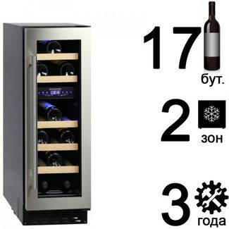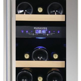 Винный холодильник шкаф Dunavox DAU-17.57DSS - встраиваемый компрессорный  винный шкаф для дома на 17 бутылок с двумя зонами охлаждения и стеклянной дверью в рамке из высококачественной нержавеющей стали. Может быть встроен под столешницу и в нишу. Винный холодильник шкаф Dunavox DAU-17.57DSS из серии DAU -  шкаф с уровнем энергопотребления А, это самый экономичный уровень энергосбережения, всего 139 кВт/год. Необходима предоплата 50%. Есть доставка.