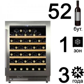 DAU-52.146SS - компрессорный встраиваемый винный шкаф на 52 бутылки в одной зоне охлаждения, со стеклянной дверью с рамкой из нержавеющей стали. Необходима предоплата 50%. Есть доставка.
