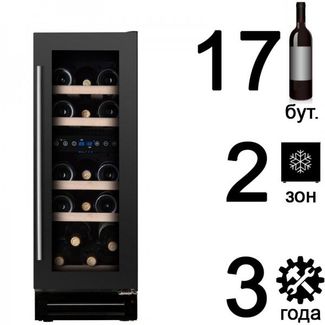 Винный холодильник шкаф Dunavox DX-17.58DBK/DP - встраиваемый компрессорный  винный шкаф для дома на 17 бутылок с 2 зонами охлаждения с электронной сенсорной панелью управления для выставления и контроля температуры в обеих зонах охлаждения. Узкий встраиваемый винный шкаф. Необходима предоплата 50%. Есть доставка.