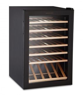 Самый доступный винный шкаф в пересчете на стоимость хранения одной бутылки. Поддерживает только одну температуру (12 градусов). Вмещает 40 бутылок с презентационной полкой, а при использовании хромированного ограждения вместимость повышается до 48 бутылок.   Необходима предоплата 50%. Есть доставка.
