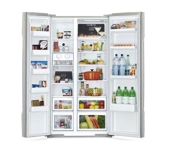 Серебристый холодильник Hitachi R-S702 PU2 GS - это элитная модель side-by-side, объем которой составляет 659 литров.