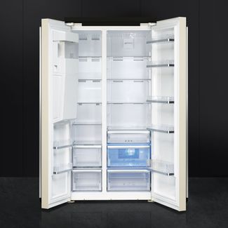 Отдельностоящий холодильник Side-by-Side Smeg SBS963P, общим объемом 616 л, с полным NoFrost, с льдогенератором с подключением к водопроводу. Фурнитура серебристая. Необходима предоплата 50%. Есть доставка.