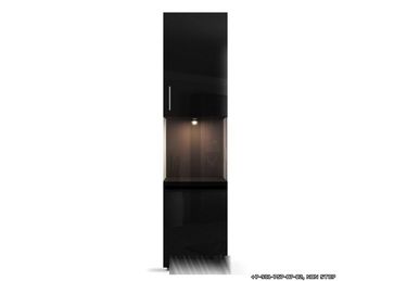 Фигаро Пенал с витриной, СВ-300 Габаритные размеры (мм): 500 х 2000 х 387 Цвет корпуса: Дуб феррара Цвет фасада: Черный глянец Описание: Фасад для всего элемента единый. Светильники в комплект не входят.