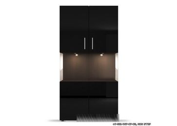 Фигаро Сервант с витриной, СВ-301 Габаритные размеры (мм): 1000 х 2000 х 387 Цвет корпуса: Дуб феррара Цвет фасада: Черный глянец Описание: Фасад для всего элемента единый. Светильники в комплект не входят.