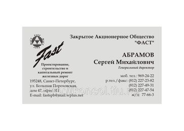 - Визитная карточка черно-белая односторонняя из обычного картона, цифровая в каталоге Визитки в Санкт-Петербурге, Калининском р-н;
