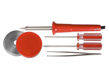 В комплекте: паяльник с пластиковой конусовидной ручкой, канифоль, припой (диаметр – 1 мм), пинцет и две отвертки – «прямой шлиц». None Страна производства: Китай