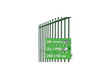 2D панельна основе сварной панели изоцинкованного прута и покрыты слоем ПВХ. Панели имеютповышенную жесткостьблагодаря использованию двойных горизонтальных прутов. Столбы выполнены из оцинкованной стали и покрыты слоем ПВХ (500 мкм.), что обеспечиваетсрок службы более 12 лет!Применение:идеально подходят для ограждения спортивных площадок.