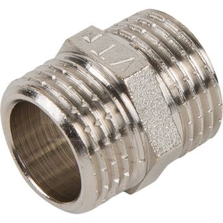 Ниппель Valtec 12"дюйма с двусторонней наружной резьбой, изготовленный из никелированной горячепрессованной латуни, используется для соединения элементов труб равного диаметра. На корпусе изделия предусмотрен участок шестигранной формы, при помощи которого ниппель легко закручивается обычным гаечным ключом. Преимущества: