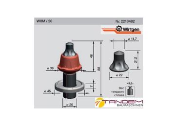 Закажите Резцы для дорожных фрез Wirtgen W8 20 у компании Тандем Баумашинен в Санкт-Петербурге, Московском р-н на портале Alloy: