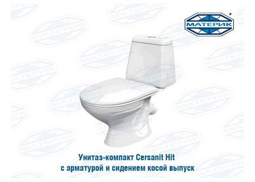 - Унитаз-компакт Hit с арматурой и сидением косой выпуск по выгодной цене 2 999 р. руб.;