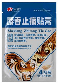 - Jinshou Shexiang Zhitong Tie Gao Пластырь тигровый с мускусом, 4 шт. (6*8 см) по выгодной цене 90 р. руб.;