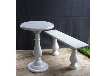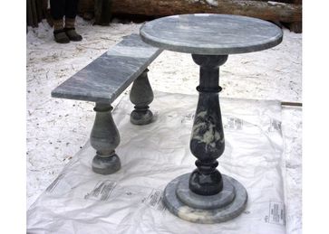 Стол и лавочка из мрамора, гранита ,змеевика.