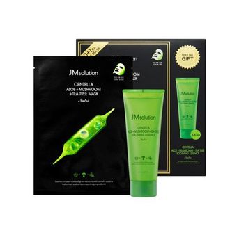 - JMsolution Centella Aloe+Mushroom+Tea Tree Mask and Soothing Essence Набор для лица успокаивающий из 11 тканевых масок и эссенции, 30мл*11шт+100мл по выгодной цене 1 720 р. руб.;
