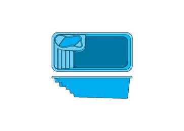 Длина - 6,05 м. Ширина - 3,43 м. Глубина- 1,89 м. Вес 650 кг. +-10%, Толщина пластика - 6-10 мм.