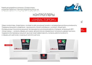 «Аквасторож» – первая в мире сист ема защиты от протечек с тройным питанием: