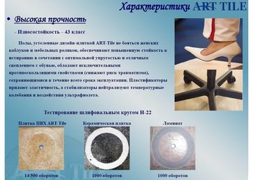 Кварц-виниловый паркетArt Tile Click–«новое слово» в индустрии напольных покрытий. Выдающиеся качества, такие как: долговечность, экологичность, устойчивость к воздействию внешних факторов (перепады температур, избыточная влажность) – делают его недосягаемым для конкурирующих с ним напольных покрытий (ламинат,линолеум, инженерная доска,массивный паркет).