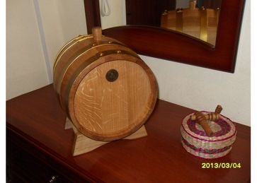 Если Вы планируете использовать дубовую бочку для выдержки, то скорее всего, краником Вы будете пользоваться не часто, а значит, на нем можно сэкономить. Бочонок Б5п - проще, надежней, а главное - дешевле. В остальном - это такой же настоящий дубовый бочонок - обжиг, толстая клепка, скальный краснодарский дуб, золотистые обручи, подставка в комплекте, доставка по краю и России. Сливать готовый напиток можно через заливное отверстие, используя тонкий шланг из пищевого, устойчивого к воздействию спирта, материала.