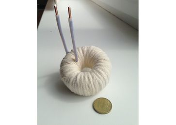 Дроссель на магнитопроводе 57,2×35,7×14. 56 витков провода ПЭТВ-2 Ø2,5 мм