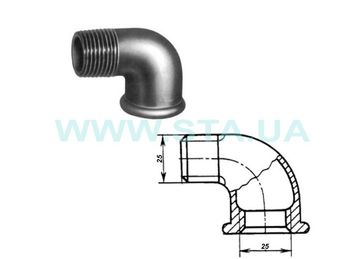 Угольник (колено) чугунный 25мм В-Н ГОСТ 8946-75 с внутренней и наружной резьбой - деталь трубопровода, которая используются для соединения трубопроводов под углом 90 градусов, и представляет собой полый изогнутый цилиндр из чугуна с резьбами на краях - больше товаров на нашем сайте www.sta.ua