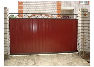 откатные ворота из проф. настила с элементами ковки (автоматика по желанию заказчика)