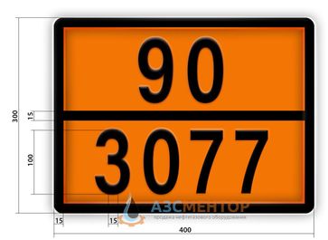 Табличка оранжевого цвета с кодом опасности 90-3077 предназначена для маркировки вещества опасного для окружающей среды Н.У.К.