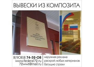 Закажите Вывески из композита у компании Рекламное агентство ВВТ-Групп ООО «Федерал» в Тюменина портале Alloy:
