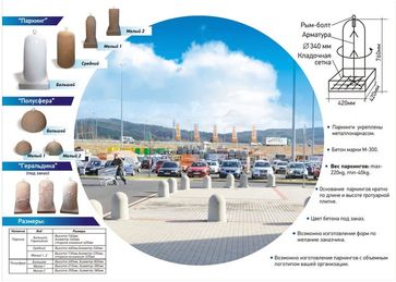 ООО "СтройСмесь" занимается производством бетонных ограждений "ПАРКИНГОВ" различных форм и размеров. Для изготовления ограждений мы используем бетон марки М-300. Наши ПАРКИНГИ имеют ровную поверхность без погрешностей, что делает их намного привлекательней других бетонных ограждений. Вес ПАРКИНГОВ от 40 до 200 кг. ПАРКИНГИ укреплены металлокаркасом. Цвет бетона под заказ. Возможна окраска под нужный цвет. Наш завод сам изготавливает формы для бетонных ограждений, поэтому возможна разработка форм по желанию заказчика.