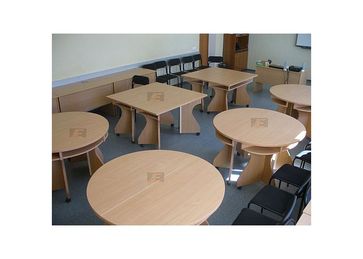 Модульные столы выпускаются в трех видах - прямоугольный, треугольный и полукруглый - и предназначены для эффективной организации рабочего пространства. Благодаря возможности объединения в более крупные и разнообразные конфигурации вы можете проводить различные мероприятия в одном и том же помещении без особых усилий. Классические уроки, лекции, тренинги, мастер-классы, свободные уроки, совещания, конференции, диспуты - все это возможно устроить в одной многофункциональной аудитории, оснащенной модульными столами. Особенно высоко оценивают эту возможность психологи, которые получают, благодаря столам, универсальный инструмент для работы с коллективами. Кроме учебных заведений, наши столы будут интересны и для коммерческих организаций.