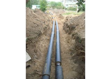 - высокой стойкостью при измененияхгидравлического давления с пиковымизначениями до 550 н/мм. Трубы выпускаются следующихдиаметров - dy 100,150,200,250,300 мм, длиной 5800 мм и 6000 мм. Основные преимущества при монтаже иэксплуатации сетей из указанных труб: 1.Сборка сетей производится без применения сварки! 2.Отсутствие П - образных компенсаторов на т/сетях. Каждое раструбноесоединение работает как сальниковый компенсатор, обеспечивающий необходимоедвижение трубы при тепловых расширениях, каждые 6 метров. Целостностьтепловой