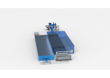 Линия состоит из неподвижно стоящего смесителя ёмкостью 450 литров, блока дозаторов с электронным весовым терминалом, ленточного и шнекового транспортера для сырья, передвижных форм, рельсовых путей, толкателей и механической резки.