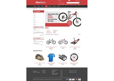 Свойства Темы: Bike Store CS-Cart 3 Template разработана специально для спортивных товаров. Гармоничное сочетание красного и чёрного цвета, бело-серый фон центрального контента и серый подвал. Это лучшая декорация для показа Байков и Рам, Колёс и Педалей, Запчастей для Велосипедов, Снаряжения - шлемов, Перчаток, Наколенников, Одежды для байкеров и других товаров этого бизнеса. Очень красивый чистый и профессиональный дизайн.