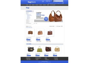 Свойства Темы: Bags Store OpenCart Template разработана специально для магазинов продающих Женские и Мужские Сумки. Это Cross Body, Shoulder Bags, Totes, Satchel, Clutches, Hobos, Checkbook Wallets. Гармоничное сочетание чёрного и синего цвета. Основной слоган "Лучшее украшение Вашего магазина это Ваши Товары". Очень красивый чистый и профессиональный дизайн.
