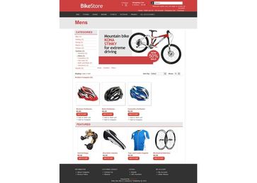 Свойства Темы: Bike Store OpenCart Template разработана специально для спортивных товаров. Гармоничное сочетание красного и чёрного цвета, белый фон центрального контента и чёрный подвал. Это лучшая декорация для показа Байков и Рам, Колёс и Педалей, Запчастей для Велосипедов, Снаряжения - шлемов, Перчаток, Наколенников, Одежды для байкеров и других товаров этого бизнеса. Очень красивый чистый и профессиональный дизайн.