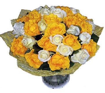 Закажите 35 белых и желтых роз букет Белая Ночь у компании Лавка подарочных корзин в Волгограде в Волгограде на портале Alloy: