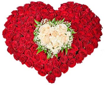 Сердце из 151 красной и белой розы